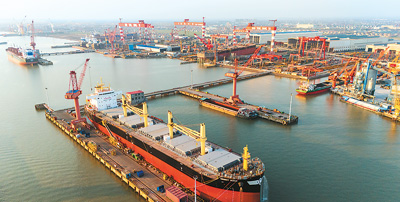 2月13日,位于江苏省南通市的南通象屿海洋装备有限责任公司船坞内,生产繁忙有序。